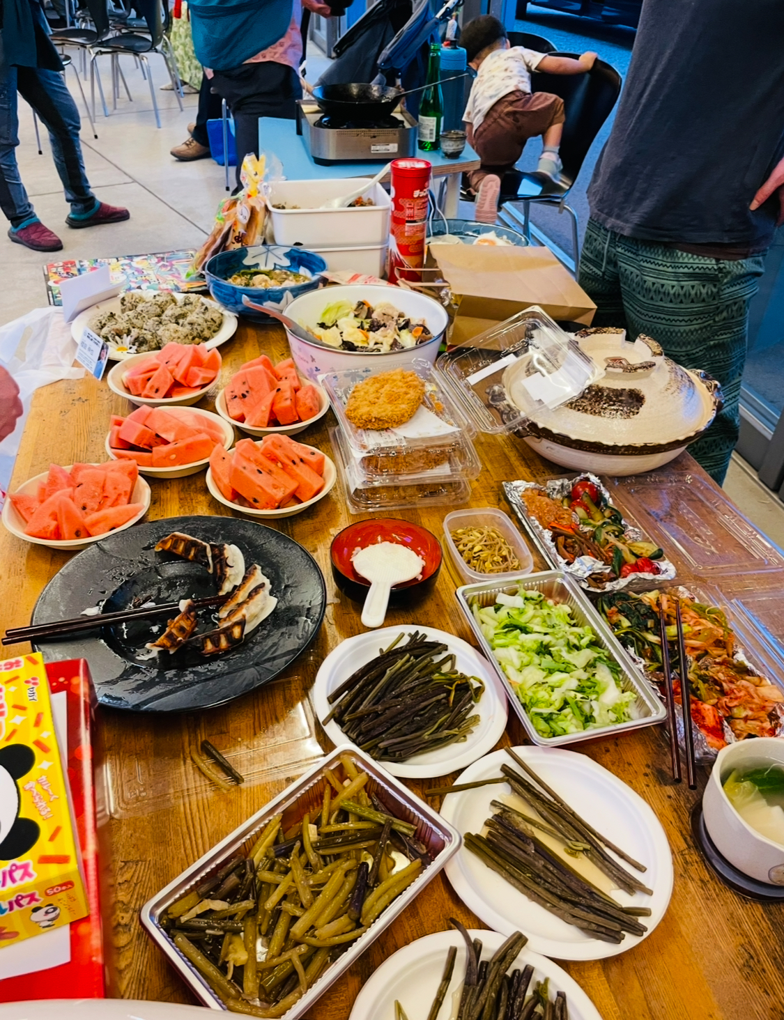 みんなが料理を持ち寄るので、とても豪華なバイキングのようになります。